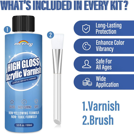Gloss Varnish for Acrylic Painting, Non-Yellowing, Non-Toxic, Anti-Crazing, High Gloss Finish, for Artwork, Acrylic Paint, Suitable for Pro Artists, Hobby Painter