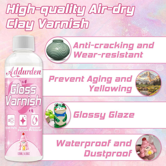 Air Dry Clay Varnish with 2 Brushes, 120 ml Acrylic Varnish, Air Dry Clay Sealant to Prevent Crack and Yellow, Waterproof Clay Glaze for Clay, Ceramic, Plaster, Wood, Glossy Glaze Finish
